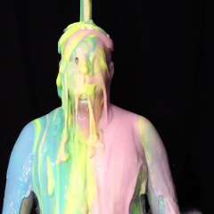 Slaps joined Mr Slime Guy in a big tub filled with warm carmel